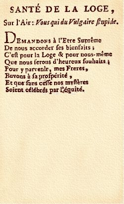 La seconda Santé che è presente nella Raccolta del 1765 della Scelta degli Uomini liberi è quella dedicata alla Loggia.
