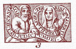 L'uomo e la donna che si trovano presso di essi, di un colore arancione, sopra un campo azzurro e blu, indicano che l'uomo e la donna non devono riporre le loro speranze su questo Mondo, perché il colore arancione suggerisce disperazione, or il lasciare andare della speranza, come qui; ed i colori azzurro e blu, sopra cui sono dipinti, mostrano che dobbiamo pensare alle cose celestiali che sono da venire, e dire come il ruolo dell'uomo sia, HOMO VENIET ADIVICIVM DEI, cioè l'Uomo deve sottoporsi al giudizio di Dio che mostrerà a noi misericordia.