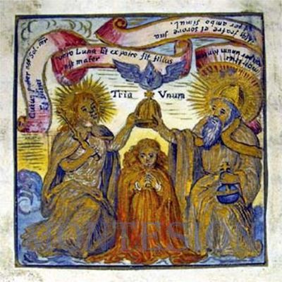 La Maria [materia prima] č incoronata dal Padre e dal Figlio.