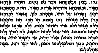 Quando l’uomo si alza il mattino, deve benedire il suo Maestro; ha l'obbligo di santificarlo subito, appena apre gli occhi. I devoti dell’antichità operavano in questa maniera: mettevano presso di loro un vaso d’acqua, e al momento del risveglio, prima di iniziare lo studio della dottrina, si lavavano le mani recitando la preghiera che accompagna l'istruzione. Quando il gallo canta, vale a dire a mezzanotte (Zohar I,60a, 169b e 384b), il Santo, benedetto egli sia, si trova nel Gan (giardino) in compagnia dei Giusti, e conviene benedirlo in questo momento. Ma è proibito benedirlo con le mani sporche e impure. Questa prescrizione non è esclusiva per l’ora di mezzanotte, ma per tutte.