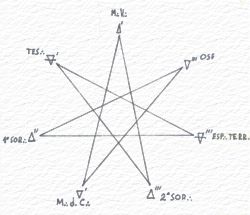 8. 1.1. La differenza tra i due schemi é: - Nello schema A oltre all'alternanza delle polarità attribuita per assunto alle mani, sussiste quella delle polarità riferite elementalmente alla collocazione interiore degli operatori. - Nello schema B invece viene osservata la semplice alternanza della polarità della mani, poiché l'altra alternanza non si potrebbe ovviamente conseguire con un numero dispari di componenti ritrovandosi due (+) o due (-) vicini. 8. 1.2. Comunque alcune sequenze logiche e analogiche possibili sono le seguenti: - secondo l'analogia qualitativa elementale